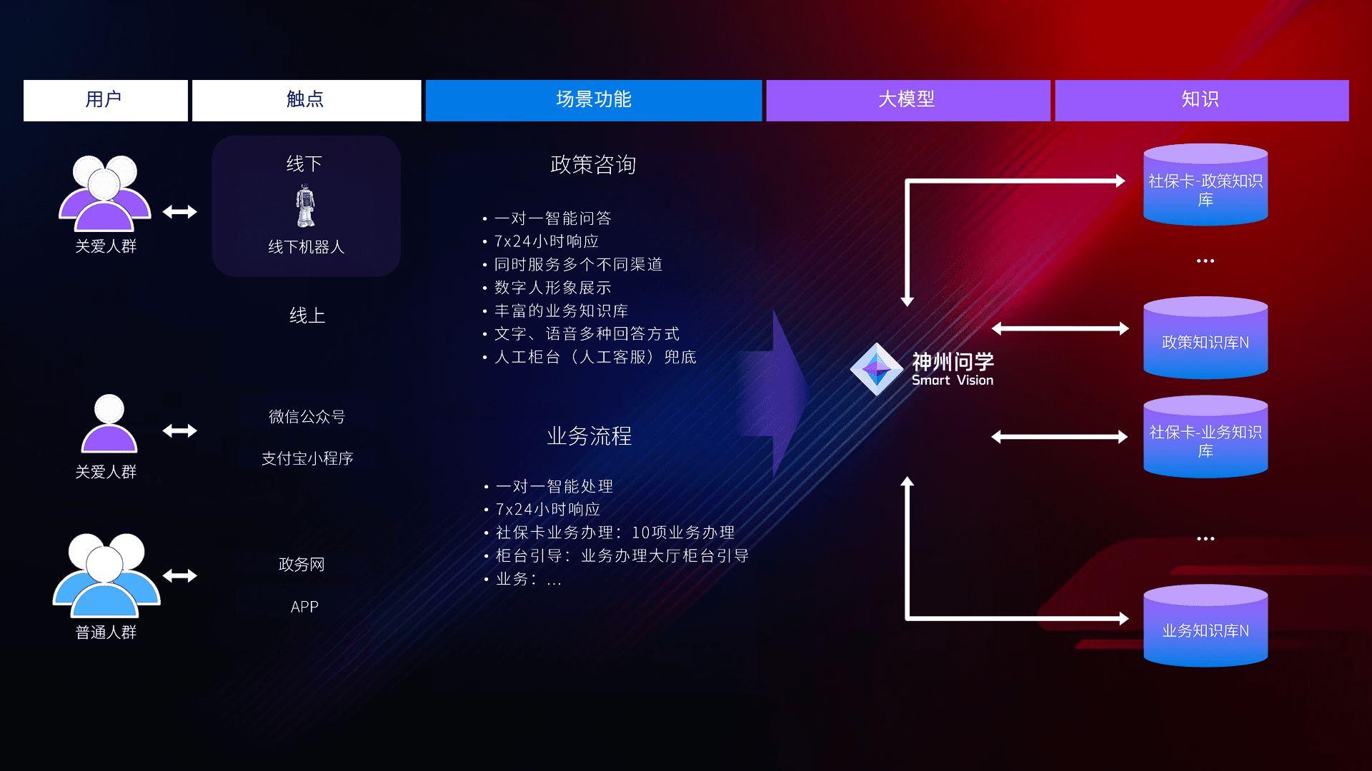 • 线上线下全覆盖:线上提供微信公众号、、、支付宝小程序、、政务网、、、、app多种渠道,,,与线下机器人形成完整服务体系。。